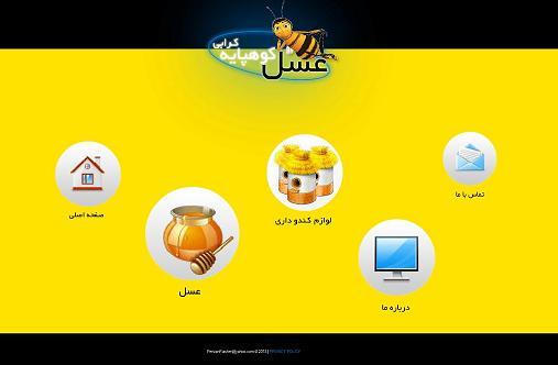 وب سایت عسل کوهپایه که صفحه اولش با فلش طراحی شده و در صفحات داخلی از css3 و jquery برای قالب سایت استفاده شده
